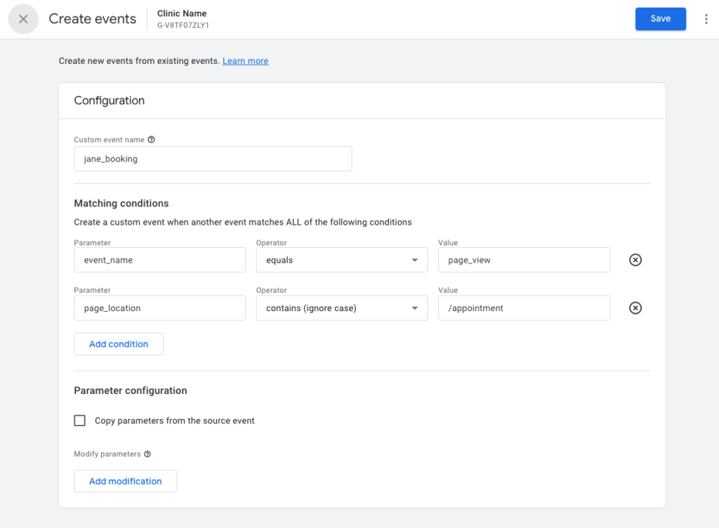GA4 uses events to track user actions, and appointment bookings are perfect candidates for event tracking. JaneApp automatically sends certain events to GA4 once connected, but you may need to customize them.