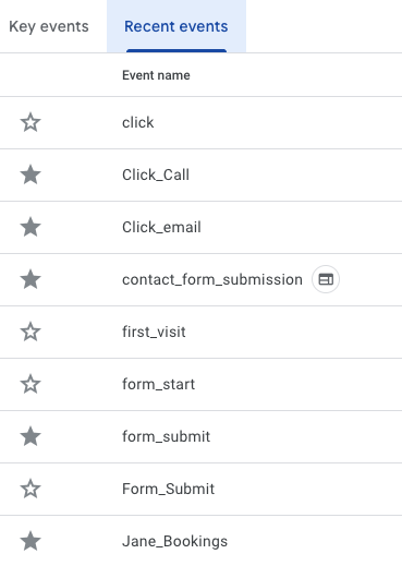Find your appointment booking event in the list. You’ll see a star next the event name, click that star to mark it as a key event.