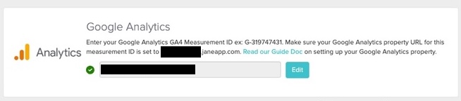 Look for the integrations or tracking section in your JaneApp dashboard. JaneApp has a field specifically for a Google Analytics tracking code.